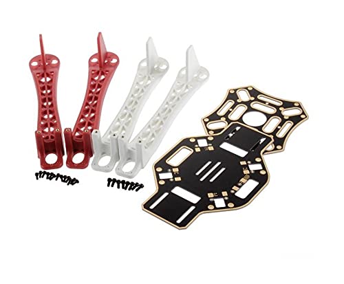 It is 450mm quad frame built from quality materials. The main frame is glass fiber while the arms are constructed from ultra durable polyamide nylon. This version of the F450 features integrated PCB connections for direct soldering of your ESCs.This eliminates the need for a power distribution board or messy multi-connectors keeping your electronics layout very tidy. F450 also comes with stronger molded arms, so no more arm breakage at the motor mount on a hard landing.